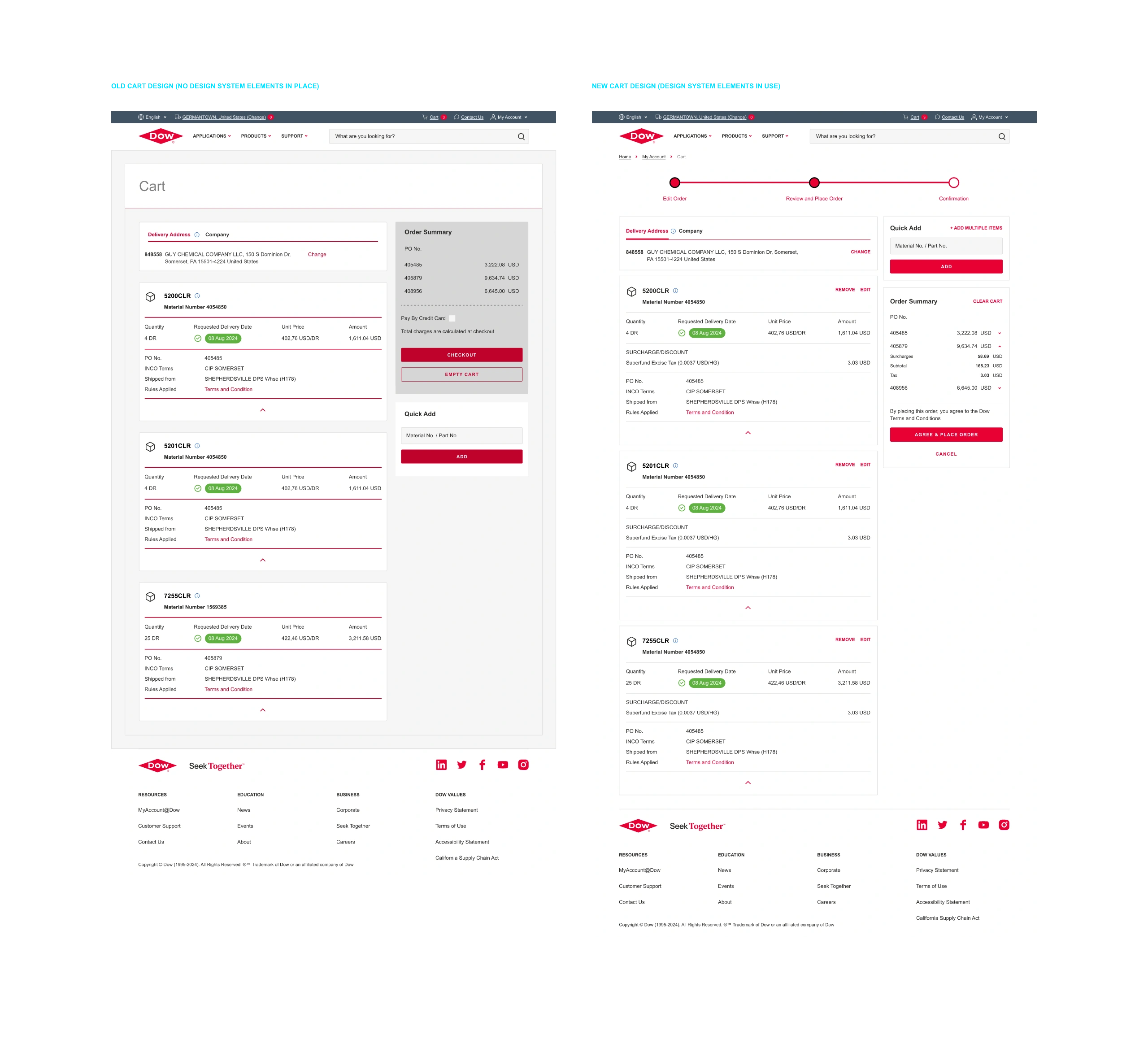 - make the ordering and cart system a uniform and simplified experienced across dow.com and My Account, regardless of the user’s role