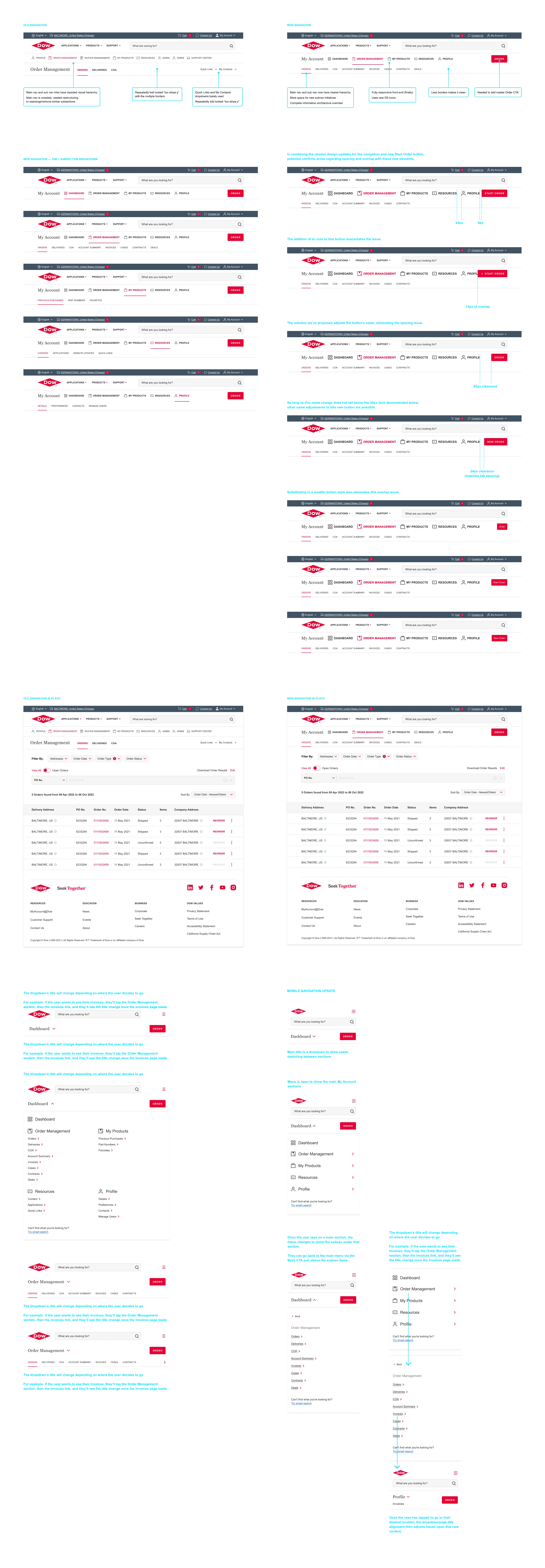 I also liased throughout iteration processes with our lead designer to ensure consistency, doublecheck ideas and actionable items, as well as ensuring there was no overlap with other My Account assignments since we would often be working within the same files at the same time. We would also have walkthroughs with Brandwidth’s and Dow’s developers to make sure components/layout changes were feasible in the limitations of dow.com’s framework.