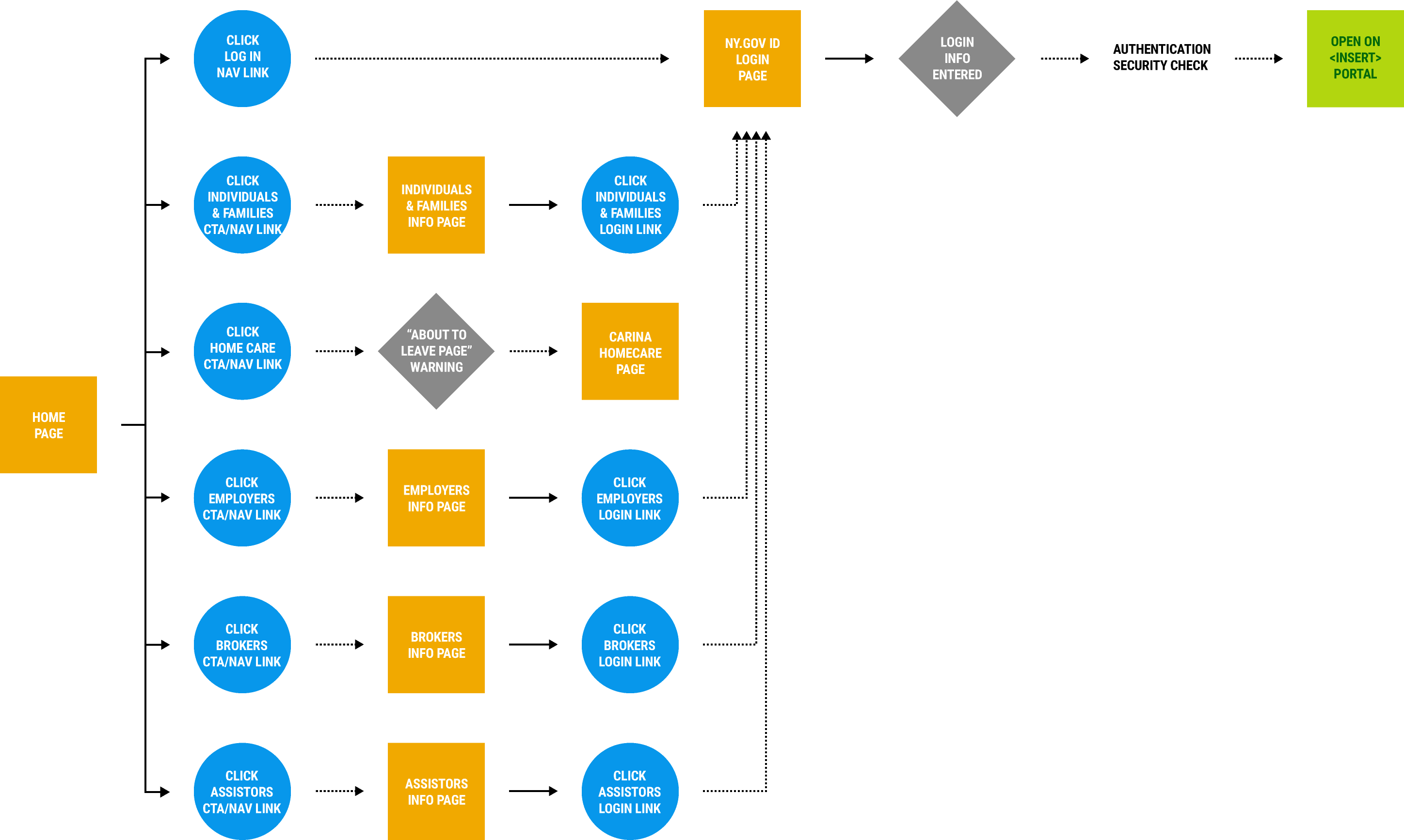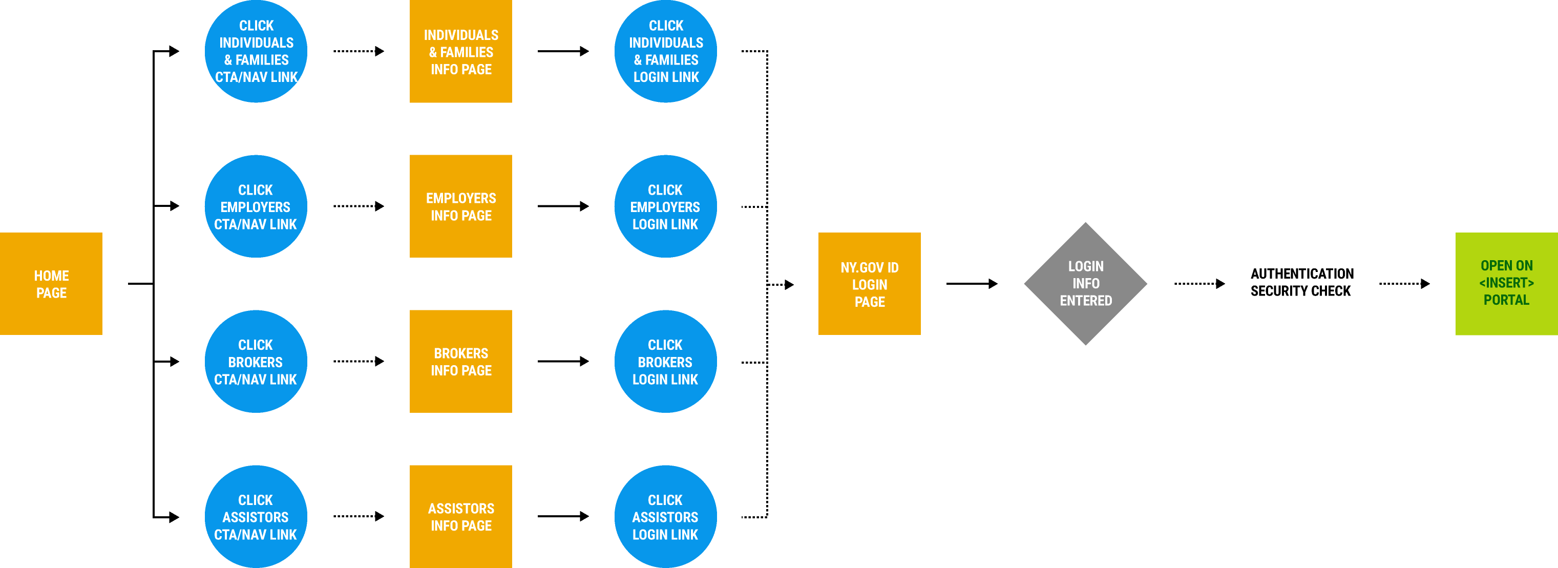 - Approval to have the Log In button act solely as a link to a dedicated NYSOH-branded login portal was shot down from DOH...